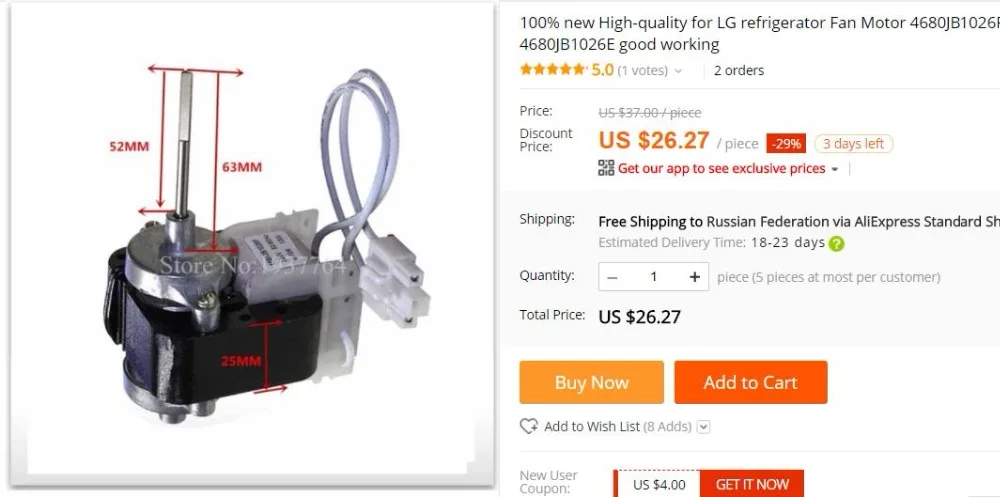 100% new High-quality for LG refrigerator Fan Motor 4680JB1026F 4680JB1026E good working