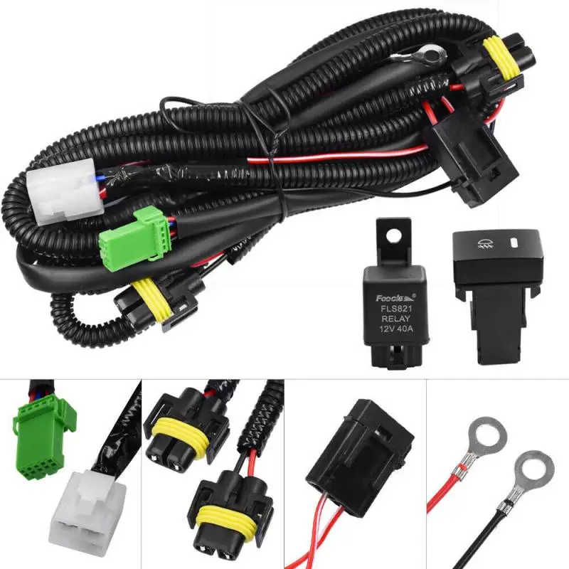 High Quality Universal Fog Light Wiring Harness Wiring Sockets Switch Kit With H11 LED Work Light 12V 40A Relay Auto Accessories