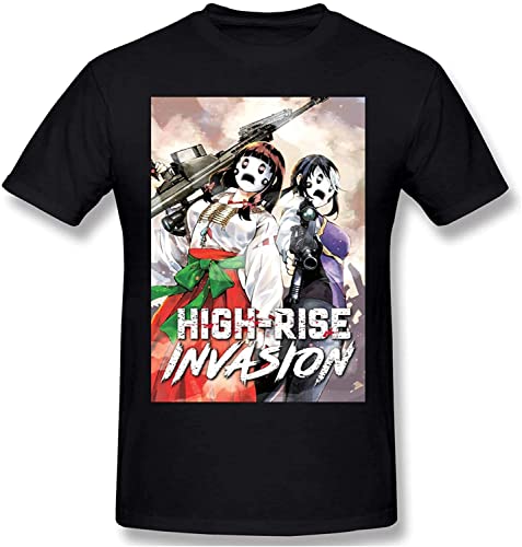 High-Rise Invasion Men's Comfortable Short Sleeve Shirts Crew Neck Personality Fashion T-Shirt Black Camicie e T-Shirt(Small)