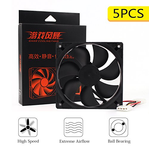 High Speed Extreme Airflow 120mm Case Fan, Big 4 Pin Connector for Mining Rig Case Open Air Frame - 2 Ball Bearing & Quiet Edition Fans(Blacke, 5 Piece)