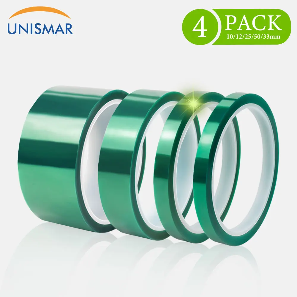 4PK PET High Temperature Tape 10mm 12mm 25mm 50mm x 33M Powder Coating Painthigh Temp Masking Tape Green For PCB Solder Plating