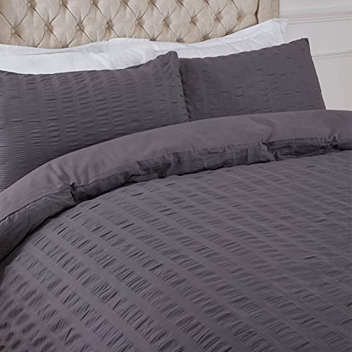 highams Luxury Classic seersucker copripiumino con federa puckering poliestere cotone filato Bedding Set