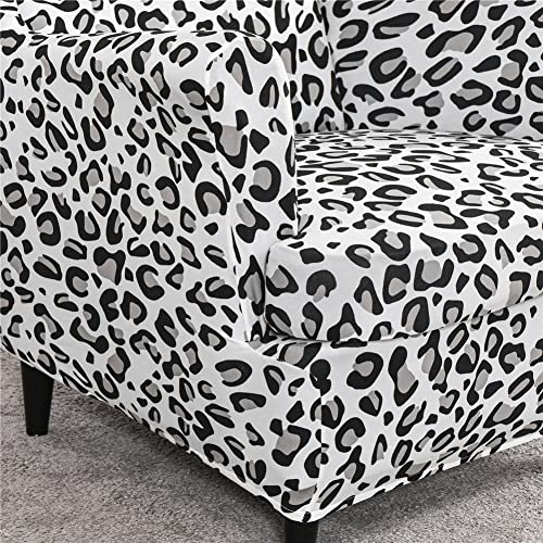 Highdi 2-Pezzi Copripoltrona con Orecchie Elasticizzato, Moda Stampa da Boemia Strandmon Copridivano da 1 Posto con Fodera per Cuscino, Lavabile, per Bar Soggiorno Camera da Letto (Leopardo nero)