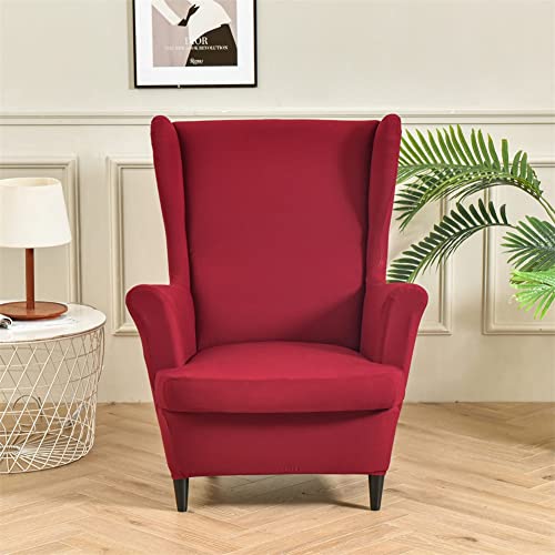 Highdi 2-Pezzi Copripoltrona con Orecchie Elasticizzato, Tinta unita Semplicità Copridivano da 1 Posto con Fodera per Cuscino, Lavabile per Strandmon Bar Soggiorno Camera da Letto (rosso)