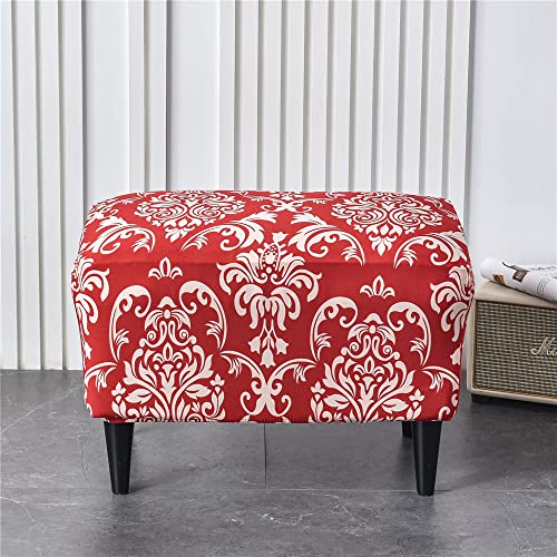 Highdi Copri Pouf Rettangolare Elasticizzato, Stampa Moderna Spandex Copertura Dell'Ottomano Copri Poggiapiedi Poltrona per Soggiorno, Rimovibile Lavabile Fodere per Sgabello (Barocco rosso)