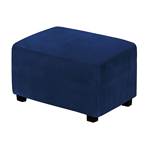 Highdi Copri Pouf Rettangolare Elasticizzato, Velluto Spandex Copertura Dell'Ottomano Tinta Unita Copri Poggiapiedi Poltrona per Soggiorno, Morbido Lavabile Fodere per Sgabello (Blu scuro,M)