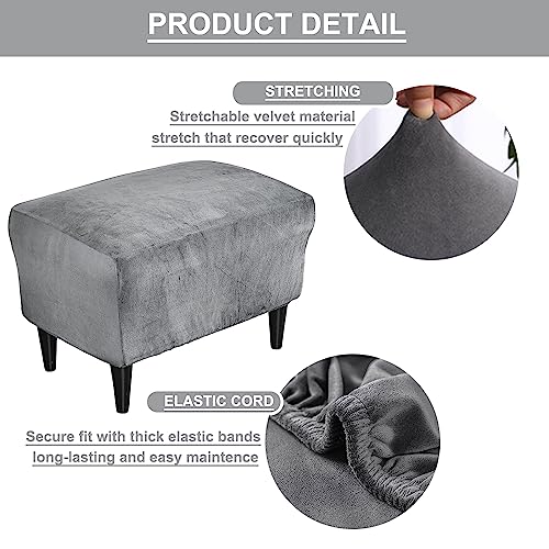 Highdi Copri Pouf Rettangolare Elasticizzato Velluto, Spandex Copertura Dell'Ottomano Moderna Copri Poggiapiedi Poltrona per Soggiorno, Morbido Lavabile Fodere per Sgabello (grigio,1 Pezzi)