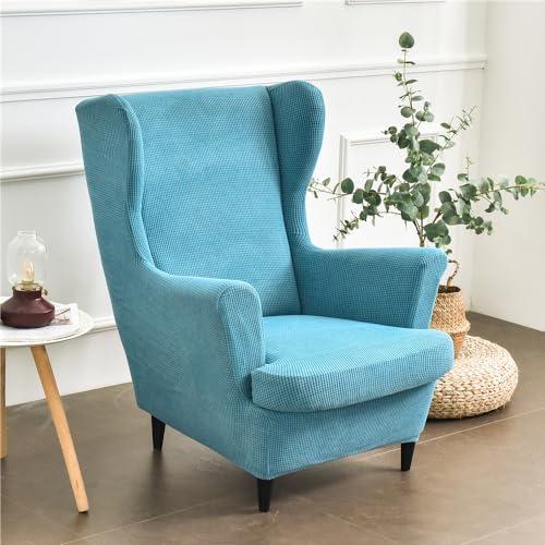 Highdi Copri Pouf Tessuto Jacquard Elasticizzato Rettangolo Copertura Dell'Ottomano Tinta Unita Copri Poggiapiedi Poltrona per Soggiorno, Rimovibile Lavabile Coprisgabello (Azzurro)