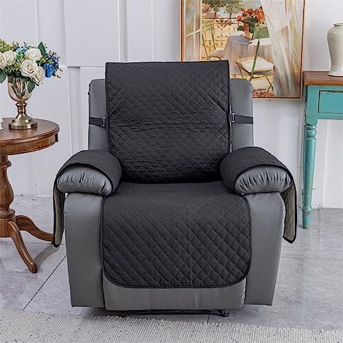 Highdi Copripoltrona Relax Reclinabile Trapuntato Universale con Tasche, 1 Posto Impermeabile Copripoltrona Reclinabile Elettrica con Fascia Elastica, Lavabile, Antiscivolo (Nero)