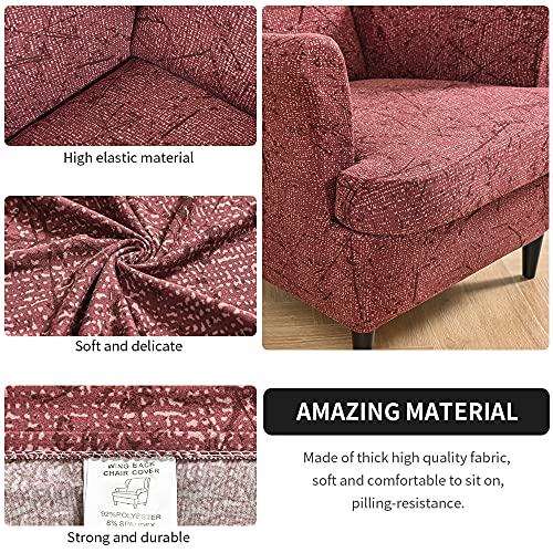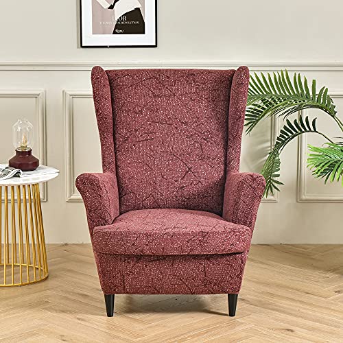 Highdi 2 Pezzi Copripoltrona con Orecchie Elasticizzato, Copridivano da 1 Posto con Fodera per Cuscino, Lavabile Rimovibile per Bar Soggiorno Camera da Letto Reception (Rosso Marrone)