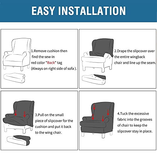 Copriscarpe per sedie Wingback di alta qualità: Questo 2-pezzo di slipcovers wingback è fatto di 92% poliestere e 8% elastan. I coprisedili artigianali sono realizzati in tessuto resistente ed elastico che è stato aggiornato di recente, traspirante, nessun sbiadimento, nessun pilling, liscio e senza rughe, garantendo sia una buona funzionalità che un comfort, proteggere la vostra pelle e voi bambini.