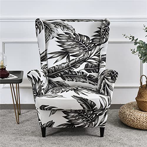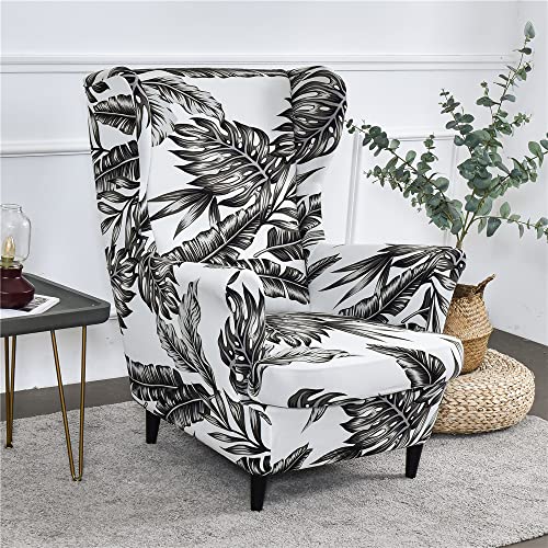 Highdi 2 Pezzi Copripoltrona con Orecchie Elasticizzato, Copridivano da 1 Posto con Fodera per Cuscino, Lavabile Rimovibile per Bar Soggiorno Camera da Letto Reception (Foglie Nere Scure)