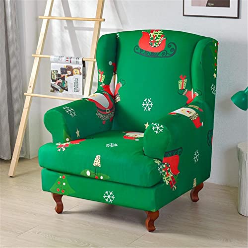Highdi 2 pezzi Copripoltrona con Orecchie Elasticizzato, Copripoltrona Decorazione Natalizia con Fodera per Cuscino, Copri Poltrona Spandex Protettiva Antiscivolo Universale (Babbo Natale Verde)