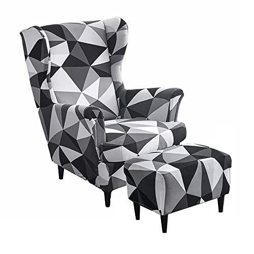 Highdi 2 Pezzi Copripoltrona con Orecchie e Copri Pouf Elasticizzato, Copridivano da 1 Posto con Fodera per Cuscino, Lavabile Rimovibile per Bar Soggiorno Camera da Letto (triangolo nero)