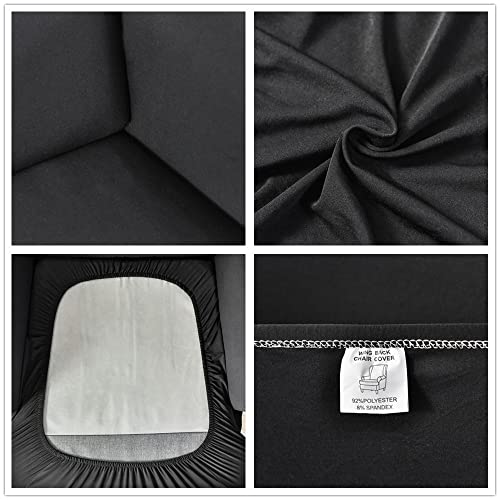 Highdi 2 Pezzi Copripoltrona con Orecchie e Copri Pouf Elasticizzato, Tinta Unita Copridivano da 1 Posto con Fodera per Cuscino, Lavabile Rimovibile, per Soggiorno Camera da Letto (Nero)