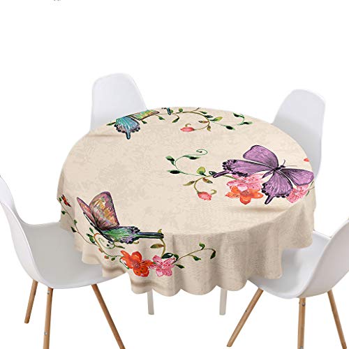 Highdi 3D Tovaglia Rotonda Antimacchia, Stampa Farfalla Copritavolo Antipolvere Impermeabile Moderna Tovaglia Tonda per Buffet Matrimonio Ristorante Festa (Fiori,Rotondo 100cm)