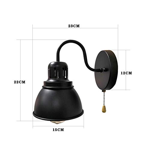 HIGHKAS Lampada da Parete Vintage Nera a soppalco con Interruttore a Catena, Applique da Parete retrò, Applique da Parete Industriale, portalampada E27 in Metallo, Applique in Ferro