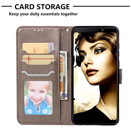 HIGHTec Custodia a Portafoglio in Pelle PU per Galaxy A9 2018, con Funzione di Supporto, Scomparti per Carte di Credito, Protezione Completa, Antiurto, Motivo Elefante 3D, Colore Verde
