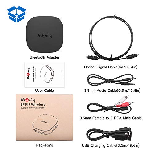 HiGoing Trasmettitore e Ricevitore Bluetooth 5.0, Adattatore Senza Fili 2 in 1 con Ricevitore Ottico Toslink / SPDIF e 3,5 mm AUX, AptX HD e AptX LL, per TV, PC, Impianto Stereo Domestico ecc.