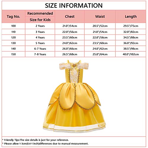 HIHCBF La Bella e La Bestia Costumi di Carnevale Ragazze Vestito da Principessa Belle per Compleanno Natale Festa Halloween Cosplay Cerimonia 7-8 anni