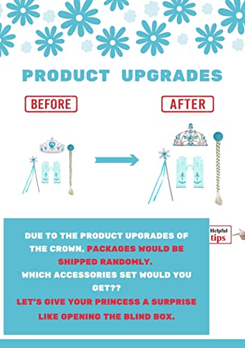 ♣ Tali splendidi costumi da principessa hanno tutto il necessario per trasformare la tua dolce metà in una principessa Elsa congelata! Il set di accessori è decorato con dettagli glitterati, abbinati a una gemma artificiale blu e un bordo argento, abbinati perfettamente con eleganti guanti e parrucca blu elsa. Una scelta ideale come regalo di Halloween, carnevale, Natale, principessa di Capodanno per le bambine e qualsiasi amante della regina delle nevi.