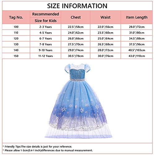 HIHCBF Costume di Carnevale Ragazze Frozen Elsa Vestito da Principessa Bambine Costumi per Compleanno Natale Festa Halloween Cosplay Cerimonia Abiti con Accessori 9-10 anni