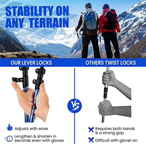 Hiipeak Bastoncini Trekking, Bastoncini Nordic Walking Telescopici Pieghevoli Per Donna e Uomo Bastoni Trekking Estensibili Ultraleggeri Regolabili 90-135 cm con Manico in Sughero. Inclusi Accessori