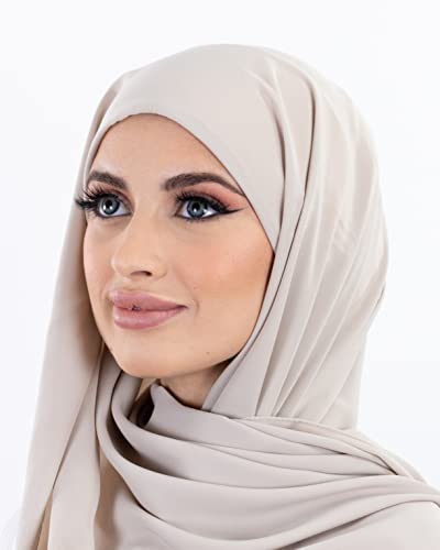 Hijab da indossare in seta di medina con berretto integrato Made in Turchia per donna musulmana velata, Tortora Chiaro Grigio, Taglia unica