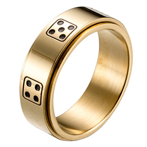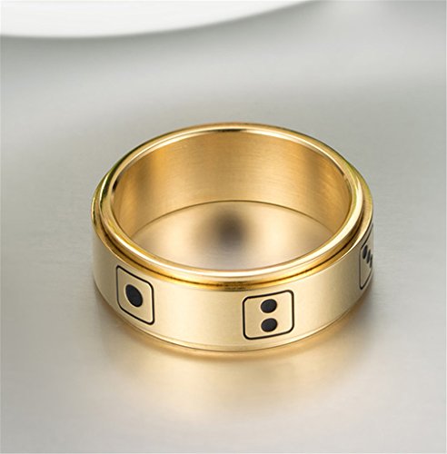 HIJONES Anello Da Uomo In Acciaio Inossidabile Con Lucky Spinner Dice Ring 8Mm Placcato In Oro Taglia 14