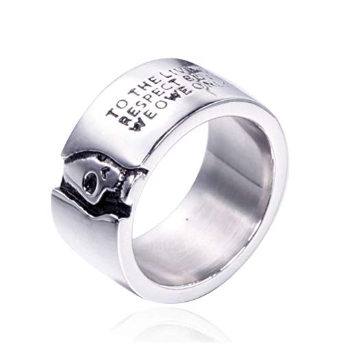 HIJONES Anello da Uomo Vintage in Acciaio Inossidabile con Teschio Freddo, Cinturino Largo 11mm con metà Faccia della Testa di Scheletro Taglia 25