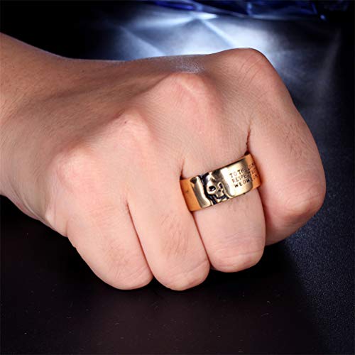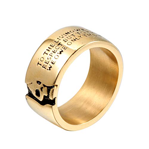 HIJONES Anello da Uomo Vintage in Acciaio Inossidabile con Teschio Freddo, Cinturino Largo 11mm con metà Faccia della Testa di Scheletro Taglia 22