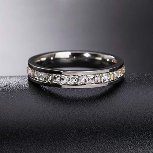 HIJONES Gioielli Donna Uomo Stainless Acciaio Singola Fila Strass Promessa Anello Argento Dimensione 15