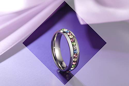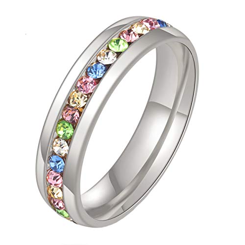 HIJONES Gioielli Donne Acciaio Inossidabile Singola Fila Diamante Anello Taglia 10 (Argento Arcobaleno)