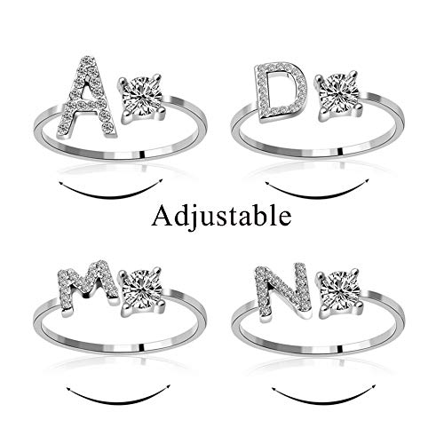HIJONES Lettera Iniziale Anello Aperto da Donna con Zirconia Impilabile Alfabeto Regolabile Argento Lettera N