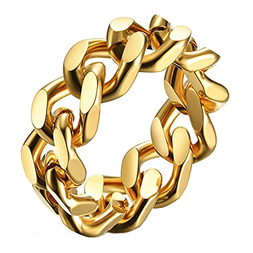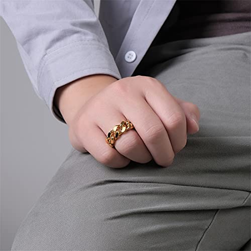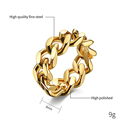 HIJONES 8mm Minimalista Cubano Collegamento Catena Anello da Uomo in Acciaio Inossidabile Nozze Gioielleria Oro Dimensione 17