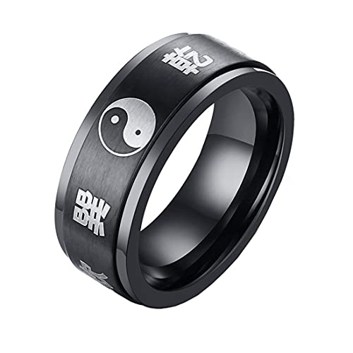 HIJONES Religioso Taiji Yin Yang Bagua Filatore Anello da Uomo in Acciaio Inossidabile Laser Inciso Nero Dimensione 22