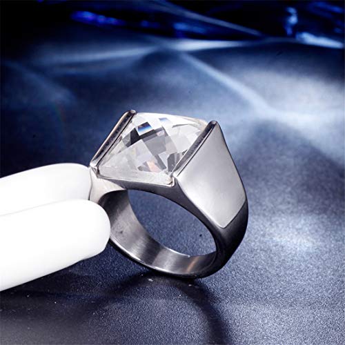 HIJONES Retro Anello della Pietra Preziosa Piazza da Uomo in Acciaio Inossidabile con Zirconi Taglio Diamante Alto Lucido Argento Bianca Taglia 27