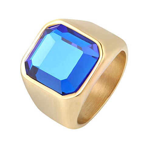 HIJONES Semplice Lucidato Anello della Pietra Preziosa Blu da Uomo in Acciaio Inossidabile con Zirconi Piazza Opaco Spazzolato Oro Taglia 27