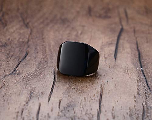 HIJONES Uomo Acciaio Inossidabile Alta LucidatoSigillo Anello for Incisione Nero Taglia 22