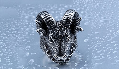 HIJONES Uomo Acciaio Inossidabile Anello del Corno della Capra Vintage Argento Nero Testa Animale