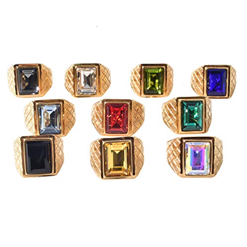 HIJONES Uomo Acciaio Inossidabile Classico 18MM Oro Placcato Birthstone Anelli con Azzurro Pietra Taglia 22