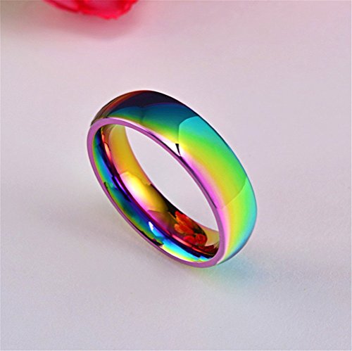 HIJONES Uomo Acciaio Inossidabile Classico Cupola Arcobaleno Anello A Fascia 6mm Taglia 14