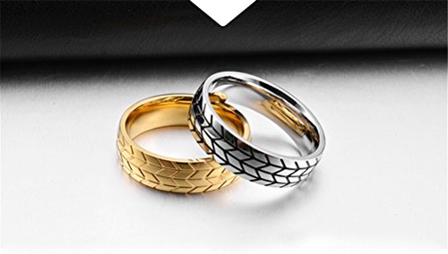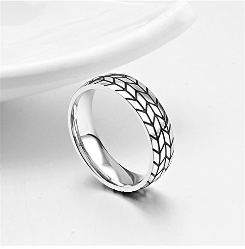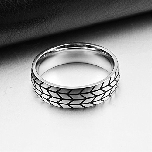 HIJONES Uomo Acciaio Inossidabile Gomma Battistrada Stile Biker Scanalato Anello Argento Taglia 25