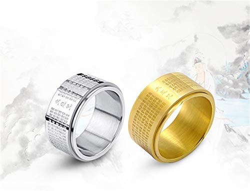 HIJONES Uomo Acciaio Inossidabile Preghiera del Mantra del Buddha Anello Oro Spinner 11Mm Largo Carattere Cinese Inciso Misura 27