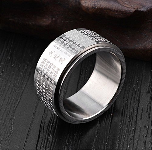 HIJONES Uomo Acciaio Inossidabile Preghiera Del Mantra Del Buddha Anello Spinner 11Mm Largo Carattere Cinese Inciso Misura 22