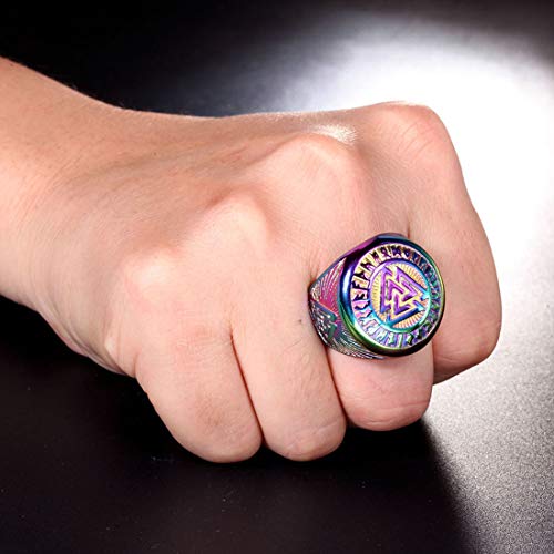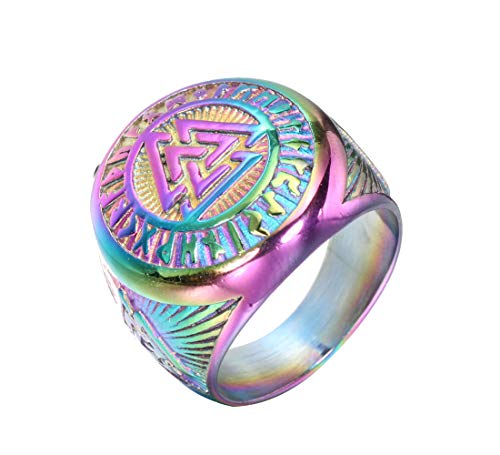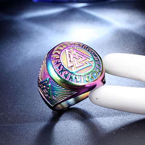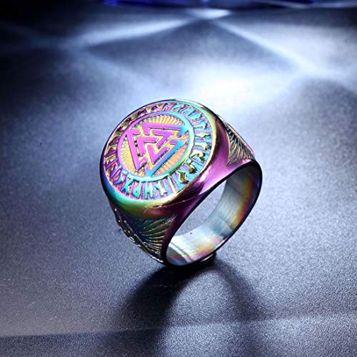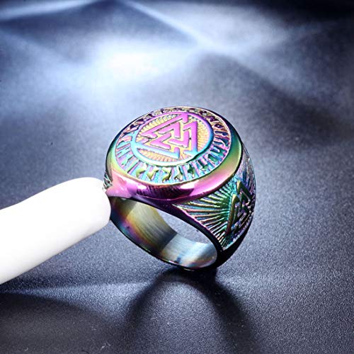HIJONES Valknut Norvegese Vichingo Odin Anello Simbolo da Uomo in Acciaio Inox Guerriero Ciclista Multicolore Dimensione 31