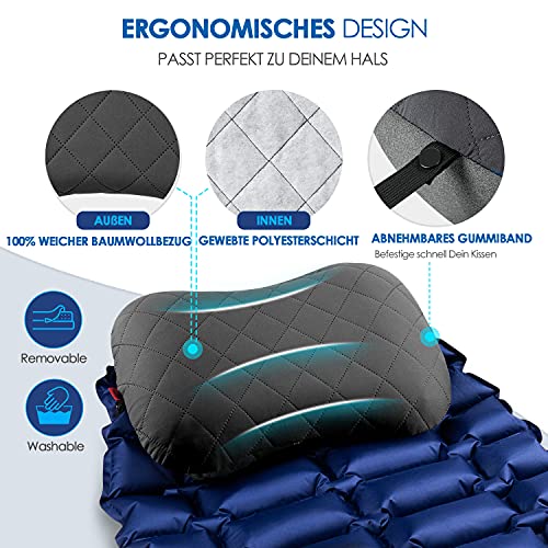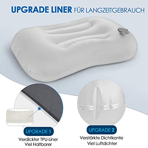HIKENTURE Cuscino gonfiabile da campeggio, da viaggio, con federa rimovibile, comodo cuscino cervicale per viaggio/esterno, cuscino da viaggio, cuscino gonfiabile da viaggio, cuscino imbottito