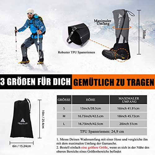 HIKENTURE Ghette per Escursionismo, Caccia, Bicicletta, Ghette da Uomo E Donna, Impermeabili, Ghette per La Protezione di Pantaloni E Scarpe da Neve, Pioggia, Insetti, Gaiters di Neve, Arrampicata-L