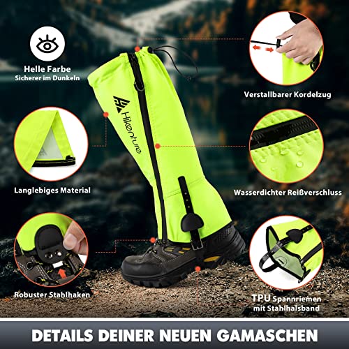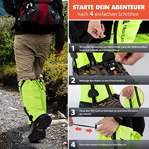 HIKENTURE Ghette da Trekking, Impermeabili, Colore Giallo Fluo, per attività all'Aria Aperta, da Uomo e da Donna, con moschettone B3-M
