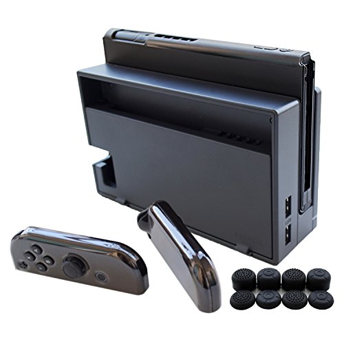 Hikfly 3in1 Custodia Ultra Thin per PC (Nero Trasparente) per Nintendo Switch Console e Joy-con Cover (Clear Black) con 8pcs Thumb Grips Custodia Super Slim Adatta alla modalità TV ancorata